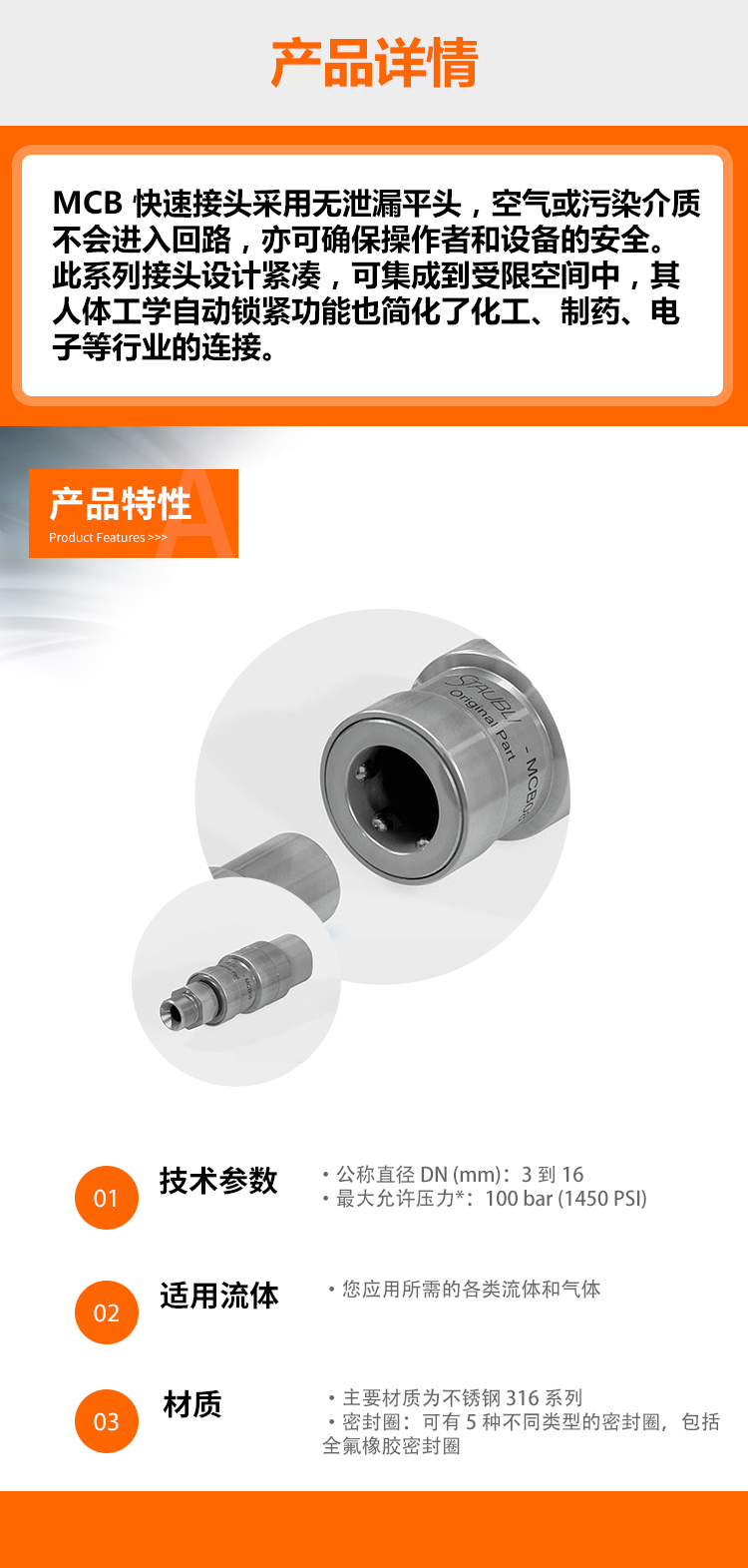 Staubli史陶比爾 MCB 無泄漏不銹鋼接頭
