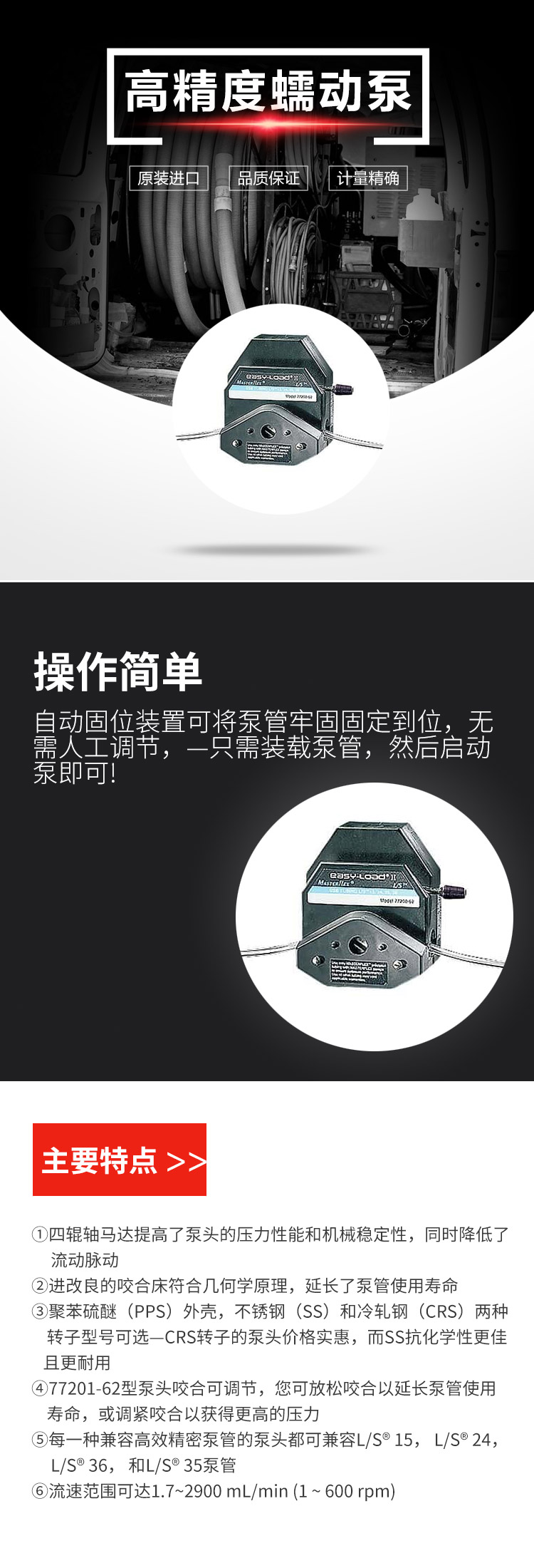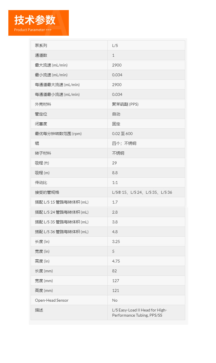 Masterflex L/S 用于高性能管的 L/S Easy-Load II 泵頭, PPS/不銹鋼
